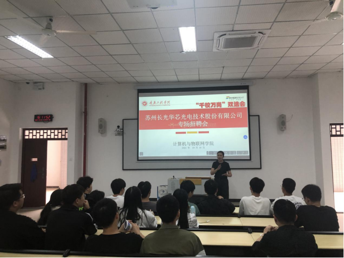本网讯(文/ 图 魏克非 王柳)10月18日,计算机与物联网学院联合苏州长光华芯光电技术有限公司在6203教室举办了线下专场招聘会,40余名我院2024届毕业生参加了此次招聘会。