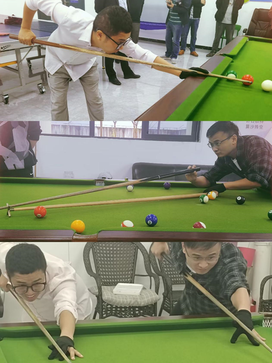 比赛采用循环赛和淘汰赛两种形式进行。赛场上选手们展现出高超的球技,吸引众多师生现场观战。选手们动作规范,神情专注,全心投入,没有丝毫松懈,或张弛有度,或动静结合,力道适当,走位精准,充分展现出角度、力度、弧度及定杆、推杆、拉杆等高超的球技水平和良好的精神素质。