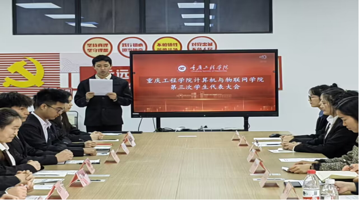 本网讯(文/图郝恬 ) 为深刻领会党的二十大全会精神,实现学生的自我提升与价值实现,营造良好的院系氛围,11月1日,计算机与物联网学院第三次学生代表大会在第7教学楼806会议室隆重召开。