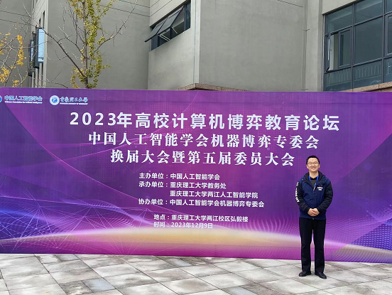 本网讯(文/图黄胜)12月9日,计算机与与物联网学院院长助理黄胜和计科系专任教师闫静一同参加了在重庆理工大学两江校区举办的2023年高校计算机博弈教育论坛会议。根据中国人工智能学会的批复,论坛由中国人工智能学会主办,重庆理工大学教务处和两江人工智能学院承办,机器博弈专委会协办。论坛与中国人工智能学会机器博弈专委会换届大会同期举行。