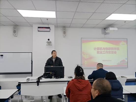 本网讯(文/图 魏克非)3月6日,计算机与物联网学院在71101会议室召开了关于2024届毕业生就业工作的攻坚会议。会议由就业科长魏克非主持,全院教师齐聚一堂,共同探讨如何更好地推动毕业生就业工作。