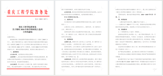 1.做好2024年秋季教材线上选用工作。相关责任人于6月24日前完成教材选用工作。其中,教材系统中已有教材且教材出版日期等信息都是一样,这种情况可以不再入池,直接选用。提醒各位老师把握好时间节点。