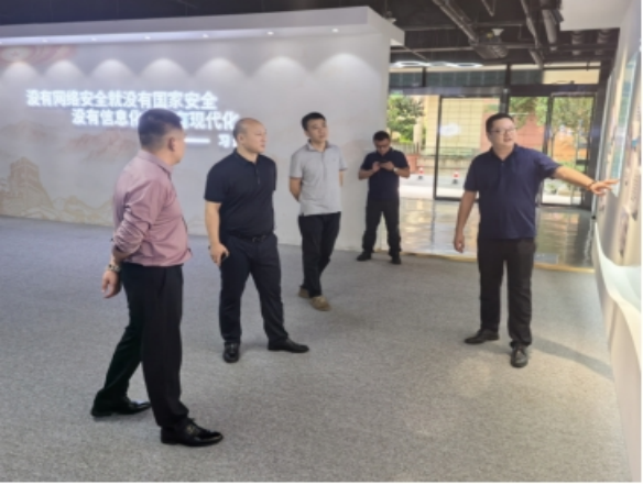 此次访问,李发陵院长受到了重庆易阅科技有限公司高层领导的热情接待。在公司负责人的陪同下,李院长一行参观了公司占地5500平米的现代化办公区域,重点考察了网络安全展厅、网络安全监控中心、网安智库及众创空间等特色区域。这些区域不仅展示了公司在网络安全领域的深厚实力,也体现了其作为行业创新引领者的前瞻布局。