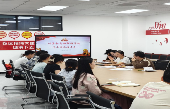 为深入推进学院各基层党支部各项工作的扎实开展,同时,加强党员实践教育中心与各党支部间的协同配合,计算机与物联网学院党总支于10月16日在7806教室召开党务工作推进会。会议由党总支专职组织员魏登雪主持,各党支部书记、支委以及党员实践教育中心全体成员参加。
