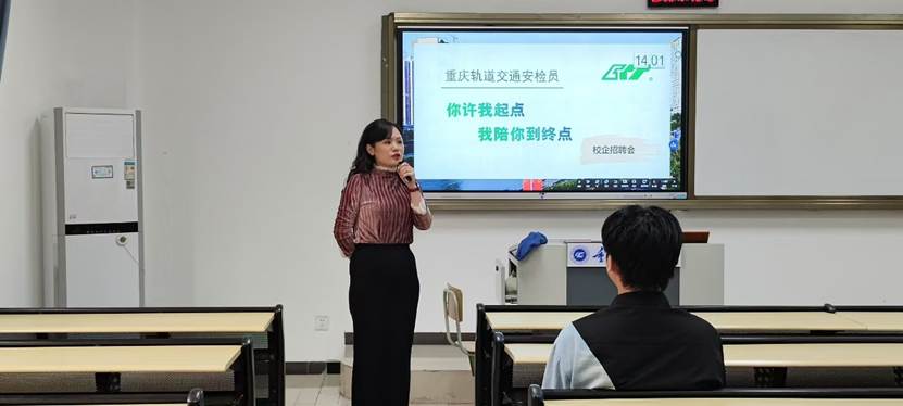 此次招聘会公司提供了轨道交通安检员的就业岗位。公司招聘专员详细介绍了公司的基本情况、当前的经营状况,所招岗位的要求与薪资待遇。同时她也与同学们进行互动,调动了同学们的积极性,让许多同学都有兴趣进行更深一步的了解。