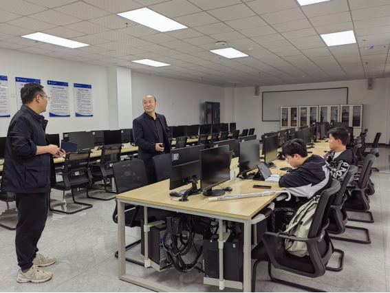 本网讯(文/图 黄玉清) 为进一步提升实验室的安全管理和教学环境质量,计算机与物联网学院于2024年10月31日组织了一次全面的实验室安全检查。本次检查由学院院长李发陵亲自带队,并有三位实验室管理员共同参与,重点检查了各台计算机机的教学环境、实验室设备的状态、资产管理情况以及教学记录的填写情况。