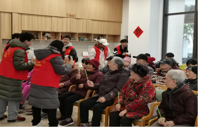 活动中,志愿者们满怀爱心与老人把手话家常,细致地询问他们的身体状况和生活情况,耐心的倾听老人们的青春故事和美好心声,现场氛围温馨而融洽。“婆婆,多穿点衣服”“爷爷,注意身体”......一句句贴心的问候,一次次侧耳的倾听,温暖了老人们的心;现场,志愿者们满怀热情与老人互动做游戏,“关键词拍桌子”、“传杯子”、“手指操”等趣味性活动,让老人们展露笑颜、乐在其中,感受到儿孙绕膝、承欢膝下的美好;同时,志愿者们满怀祝福与老人共度生日会,多才多艺的志愿者们和老人一起载歌载舞,陪伴老人们度过了一个不一样的集体生日。