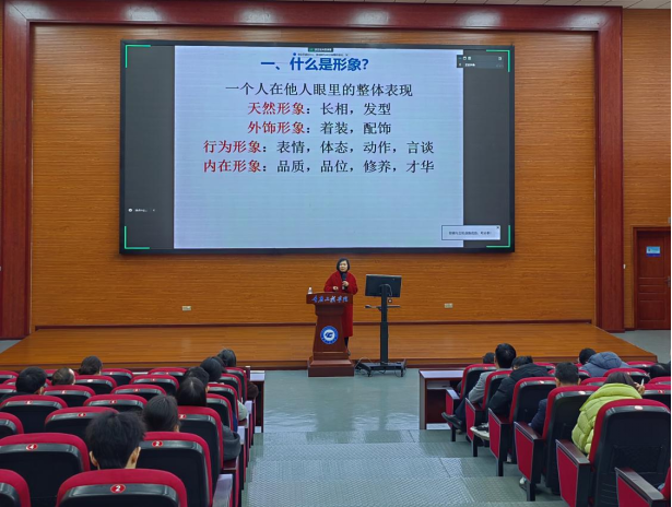 学院特邀请大学生素质教育中心邹春霞教授,为全院教职员工作了一场《教师职业形象塑造》的专题培训。邹教授结合教育行业特点,以其专业的知识和独特的视角,从外饰形象、行为形象、内在形象等维度,为教师们提供了宝贵的职业形象塑造建议。