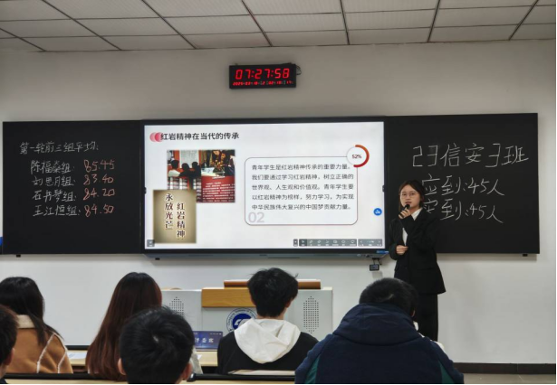课上,14名党员学长围绕《红岩精神,时代先锋的力量源泉》这一主题,生动讲述了江竹筠等革命先烈在至暗时刻坚守理想信念的崇高事迹,强调红岩精神是党光辉历程的见证,是民族精神的重要组成部分,他们用青春话语诠释信仰力量,呼吁同学们坚定理想信念,勇担时代重任。最后,辅导员勉励学生们关注并记录身边那些传承红色基因的点滴善举,把理论学习的成果切实转化为日常的具体实践。