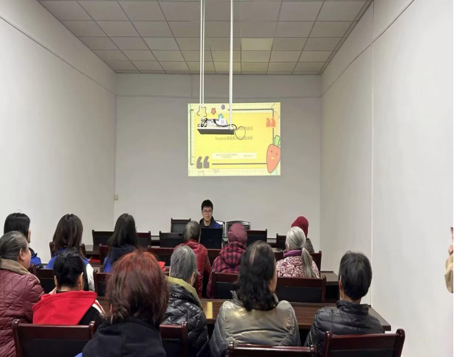 在首场Deepseek科普讲堂中,20名银发学员佩戴老花镜认真记笔记的场景令人动容。志愿者们通过“场景模拟+实物演示”,生动展示了深度求索人工智能系统在医疗预约、生活缴费、应急求助等适老场景的应用。61岁的王阿姨兴奋地向邻居展示学习成果。课堂特设“银龄数字能力评估表”,为后续开展精准化服务建立数据库。