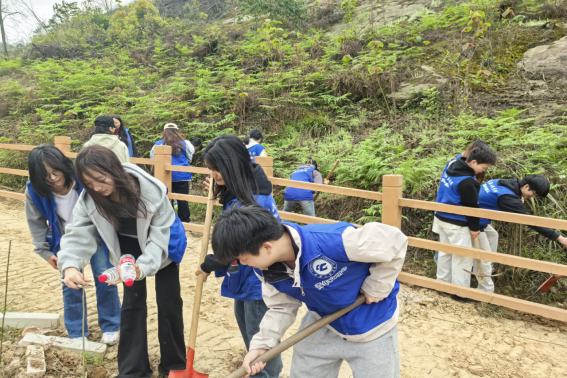 志愿者们躬身实践,以青春汗水浇灌绿色希望,精心培育绿色的希望之苗。这场充满活力的实践活动,不仅为大自然添上一抹浓郁的绿意,还是一堂别开生面的行走的思政课,让“绿水青山就是金山银山”的理念在青春的土壤里深深扎根。引领着新时代青年在保护环境、促进绿色发展的道路上坚定前行。