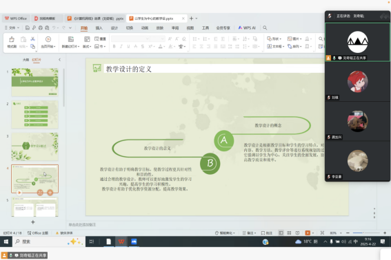 刘奇韬副教授从“教学设计的概念”进入讲解,阐述了教学设计的意义,即教学设计有助于明确教学目标,使教学过程更具针对性和目的性,通过合理的教学设计,教师可以更好地激发学生的学习兴趣,提高学生的学习积极性。教学设计有助于优化教学资源分配,提高教学效果。