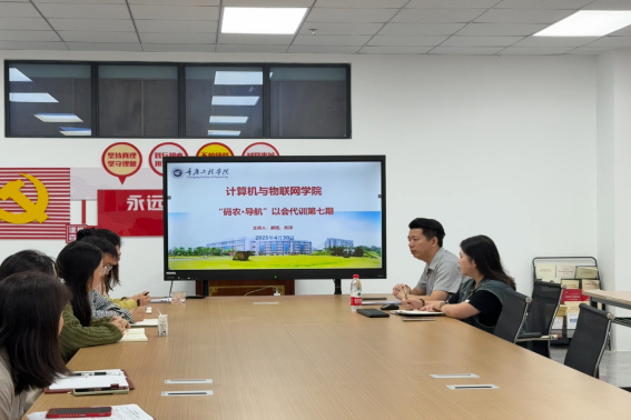 本网讯(文/图 王玲)为提高辅导员队伍素质能力,开阔工作思路,计算机与物联网学院于2025年4月30日9:30在7806会议室开展“第七期‘码农·导航’以会代训”工作会,本次工作会邀请到郝恬、尤洋两位老师做分享,我院全体辅导员参会。