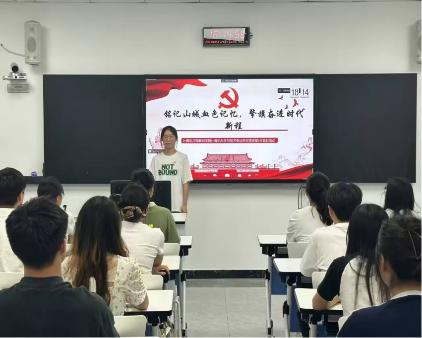 为弘扬爱国主义精神,计算机与物联网学院计算机科学与技术专业学生党支部于6月12日在7教708教室开展 “铭记山城血色记忆,擎旗奋进时代新程”的党日活动,积极分子及以上阶段参与。活动通过历史回溯、党课学习、知识问答等形式,重温重庆大轰炸历史,传承山城精神。