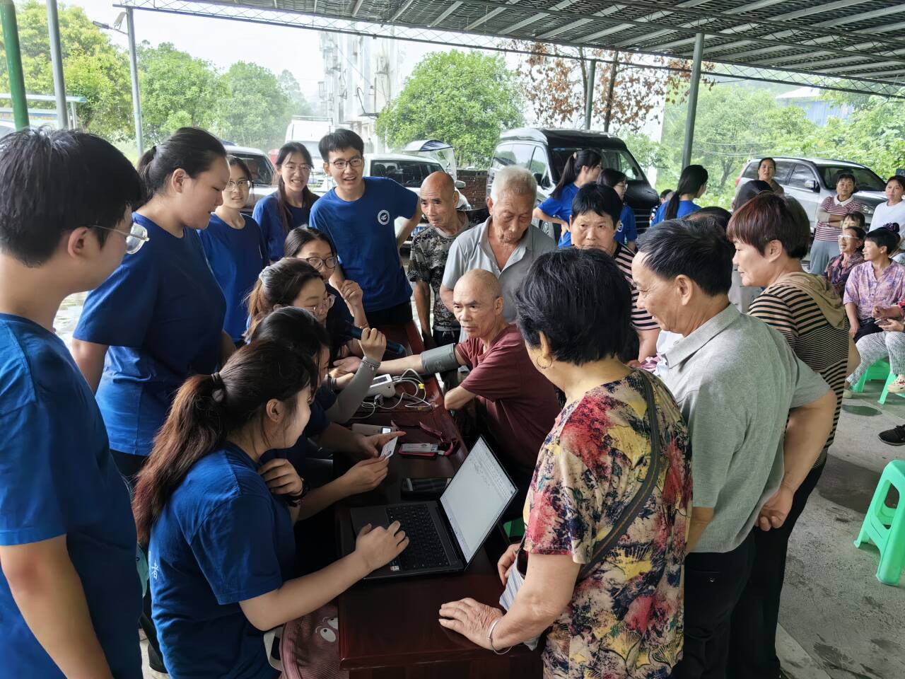 前期已初步搭建“健康状态”档案系统、“空巢老人”关爱系统,完成“巴南儿歌传承”等重点项目,取得阶段性成果。此次“三下乡”活动中,学院进一步优化完善相关系统与服务,持续深化校村合作。 在随后的志愿服务活动中,志愿者们化身 “贴心小能手”,迅速投身惠民服务工作。在健康关怀方面,志愿者们运用专业设备为50余名村民开展血压、血氧、心率等基础健康检测,并结合此前共建的“健康状态”档案系统,进一步完善村民健康数据,提供个性化健康咨询与养生建议,让村民在家门口享受便捷服务。