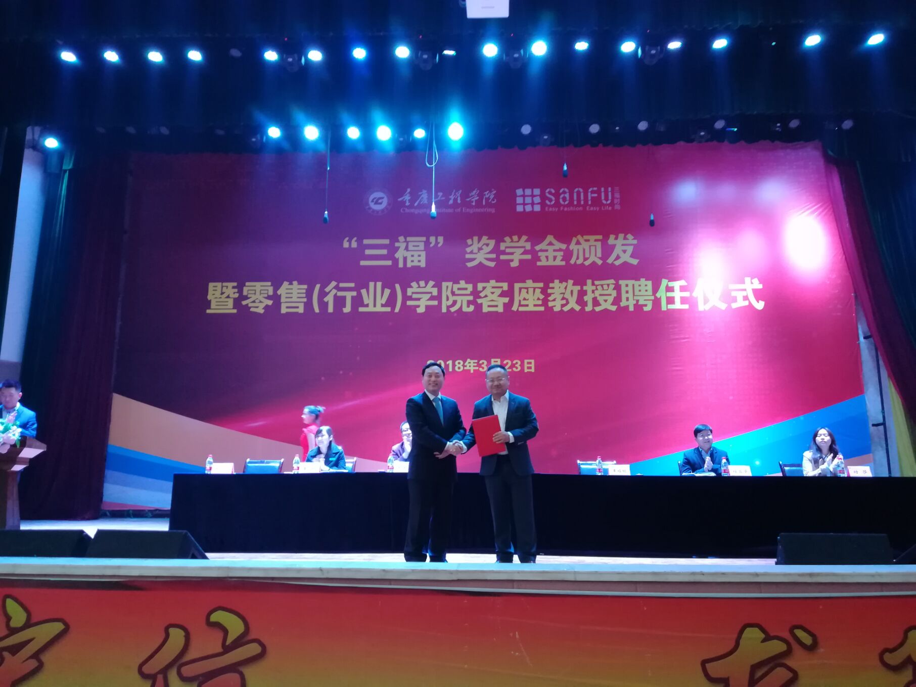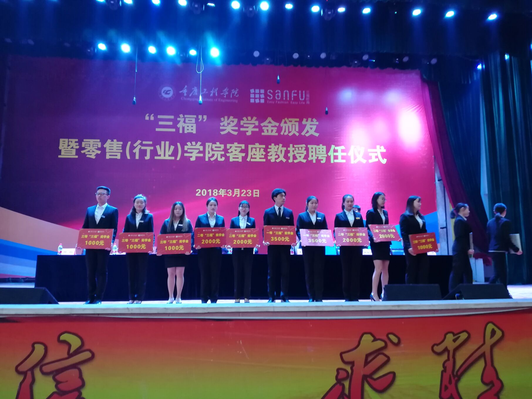 为进一步深化产教融合办学模式,推动专业发展,3月23日下午,我校管理学院在学术报告厅举行专门仪式,为“三福”奖学金获得者颁奖,聘任零售(行业)学院客座教授。