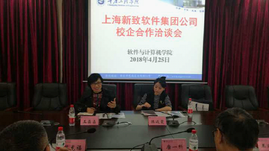新致软件重庆分公司副总经理陈远霞,学校招就处处长王建东,校企合作办和软件学院相关人员参加相关活动。