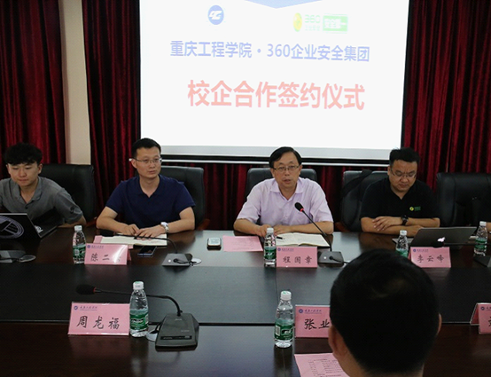 360企业安全集团绵阳基地副总经理李云峰、绵阳基地总经理助理兼教务长陈二云,计算机学院院长曹耀钦、副院长谢正兰,电子信息学院副院长陈成瑞,工程训练中心副主任陈艳莲等参加签约仪式。仪式由校企合作办主任秦凤梅主持。