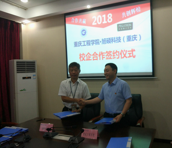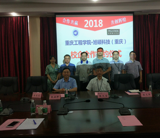 旭硕科技(重庆)有限公司人力资源部经理林文淦,我校软件学院院长周龙福等,参加签约仪式。