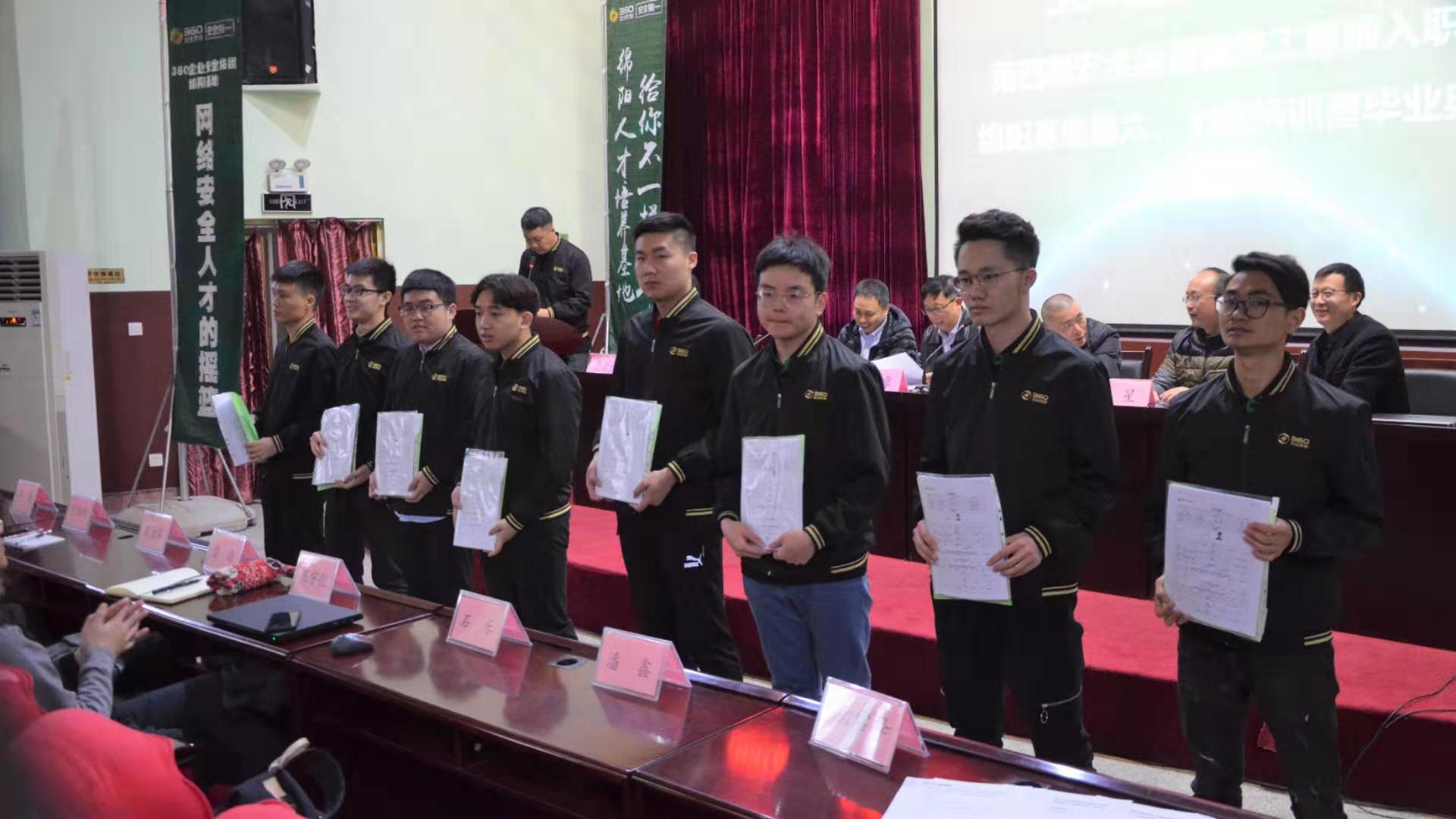 3月1日,360企业安全集团绵阳基地举行第四期安全运营服务工程师入职典礼,庆祝学员顺利完成为期6个月的网络安全专业培训和带训考核,并正式入职360企业安全集团。360企业安全集团副总裁、绵阳奇安信公司总经理程国章,绵阳奇安信公司副总经理,重庆工程学院计算机学院魏星等参加了典礼。重庆工程学院第一批360安全运营服务工程师订单班的14名学生,上台领取了入职Offer,来自物联网工程专业2015级学生张航代表学员分享了个人的培训心得和实习收获。据悉,入职学员将服务于全国的政府机构、重点行业和大型企业的网络安全防护。