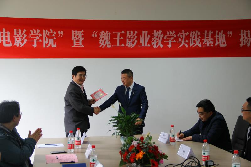 揭牌仪式由数字艺术学院副院长杨飞主持,学校招就处处长兼校企合作办主任王建东、数字艺术学院副院长庄涛文、魏王影业CEO魏越、CGO覃科等参加了会议。