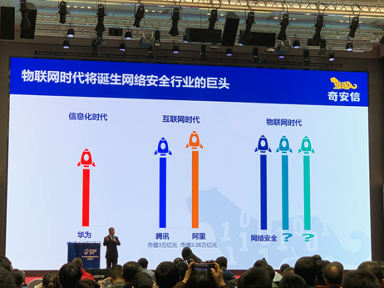 他表示,在5G和物联网等技术的带动下,2032年网络安全产业规模将达万亿元。他预测,信息化时代诞生了华为,互联网时代诞生了腾讯和阿里,而物联网时代将诞生三家巨头企业,其中至少有一家是网络安全企业。