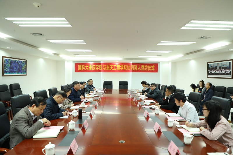 11月3日,学校与中国科学院大学重庆学院签订合作框架协议,签订仪式在国科大重庆学院举行。中科院重庆研究所、国科大重庆学院党委书记韦方强,重庆工程学院校长桂国庆,党委副书记兼常务副校长张业平,校长助理杨桂、简玉刚,双方二级单位相关负责人出席了签约仪式。首先,国科大重庆学院学生处处长、继续教育学院院长李向东介绍了项目的合作背景。桂国庆讲话认为,双方合作协议的签订是探索人才培养的新路径,为学生提供了更优质的学习平台,将为学生的进一步成长打下坚实的基础。重庆工程学院依托国科大重庆学院优势办学资源,有益于推动学校特色学科建设、专业建设和课程建设,有益于深化学校教学改革,有益于提高教学和学生培养质量。他要求学校相关部门进一步加强互动,及时沟通,把项目实施工作做实做细。双方共同协作,牢记“为党育人,为国育才”光荣使命,落实立德树人根本任务,为共同目标相向而行,助力学生成长成才。他预祝合作达到预期目标,并取得圆满成功。韦方强介绍了国科大重庆学院在渝与相关高校合作情况,他认为国科大重庆学院与重庆优秀特色高校合作,推动“卓越工程师班”项目建设,共同培养卓越工程师,是国科大重庆学院落实重庆市委市政府相关要求的重要体现,将与重庆工程学院携手联动共同培养“大国工匠”。他强调合作项目要建立长效管理机制,不断改进教学体系,保证教学质量,为国家、地区培养更多合格的应用型高级人才。随后,桂国庆和韦方强分别代表重庆工程学院和国科大重庆学院签订了合作框架协议。据悉,两校将围绕重庆市以大数据智能化为引领的创新驱动发展、科教兴市和人才强市等重大战略需求,发挥双方在大数据、人工智能、软件工程、电子信息、智能制造等学科专业的资源优势,共同促进和带动相关前沿学科专业发展,科学研究、人才培养、服务社会“三位一体”齐头并进,更好服务区域经济社会发展。通过双方校校紧密合作、联合协同育人,共同达成建成“一流的学科专业”、打造“一流的教师团队”、建立“一流的教学体系”、培养“一流的技术人才”、产出“一流的科技创新成果”的合作目标。