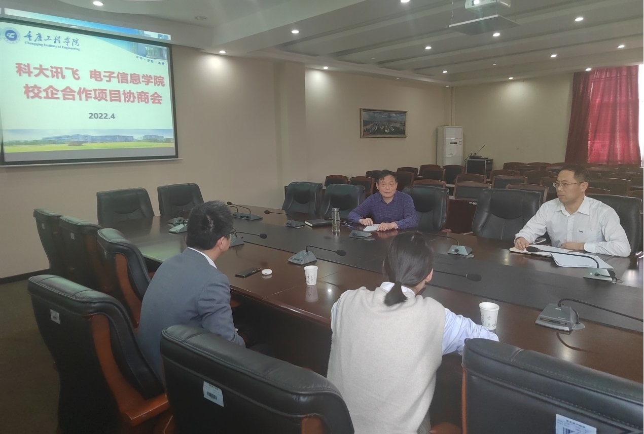 4月8日下午,科大讯飞股份有限公司杨洋一行到电子信息学院就校企合作事宜开展洽谈交流,电子信息学院院长何世彪、副院长陈成瑞参加交流。何院长介绍了学院基本情况,希望双方能充分发挥校企双方优势资源,开展良好的合作。杨总表示科大讯飞在语音智能处理、人工作智能领域有着领先的技术优势,与高校有着紧密的合作关系,并取得了丰富成果,期待与重庆工程学院开展富有成效的合作。双方围绕共建产业学院、应用型人才培养、实践教学基地建设等事宜进行了深入的交流和研讨,在合作内容、路径等具体问题上达成了良好共识。