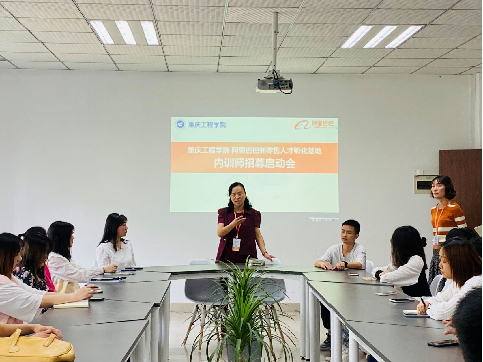 4月11日,阿里巴巴新零售人才孵化基地2021-2022学年第二学期内训师招募启动会于在第三教学楼进行。阿里基地负责人曾霞、基地实训班主任卫莉、赵鹏飞、陈皓月参加会议。在启动会上,管理学院电子商务专业18级内训师代表扶小雪分享了自己成长为基地第二届内训师的经历,同时给本次报名的同学们传授工作的经验。阿里基地职能岗曹耘瑕对后续面试特训流程进行了详细的介绍,让同学们更加深入的了解内训师的主要工作内容,同时在面试特训的过程中更好的提升自己。阿里基地负责人曾霞给同学们介绍了内训师在行业中的发展以及培训在团队管理中的重要性,为同学们未来的职业规划提出建议。