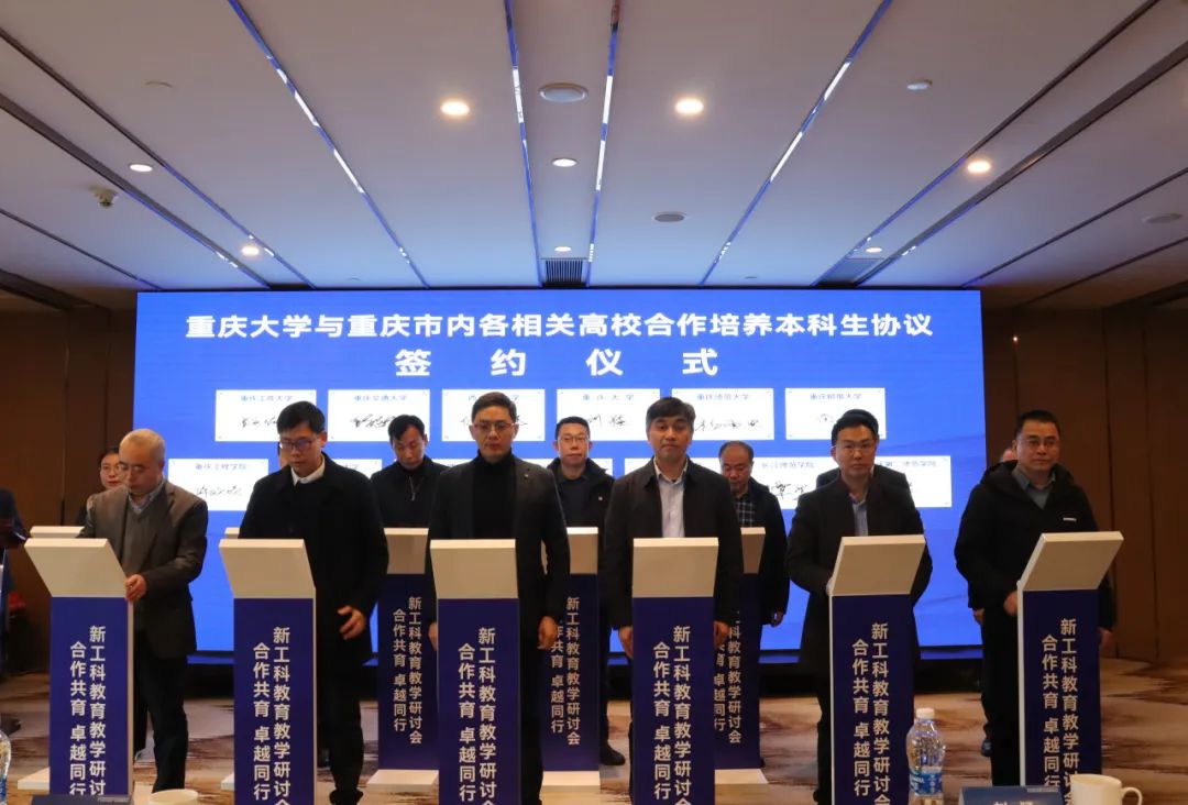 为进一步深化市内各新工科教育主体间的协同合作,共同推进新工科教育教学及人才培养模式改革走深走实,1月13日上午,在重庆市教育委员会指导下,重庆大学国家卓越工程师学院与重庆市高校教学管理工作研究会、重庆大学本科生院在重庆富力假日酒店举行重庆市“合作共育 卓越同行”新工科教育教学研讨会。会上,我校与重庆大学签订了合作培养本科生协议。 重庆市教育委员会高等教育处副处长张东,重庆大学本科生院院长、教务处处长刘猛出席会议,西南大学、西南政法大学、重庆三峡医药高等专科学校、重庆工程职业技术学院等42所普通本科院校和高职(专科)院校参加会议,会议由重庆大学国家卓越工程师学院执行院长罗远新和重庆大学本科生院副院长、教务处副处长吴小志主持。