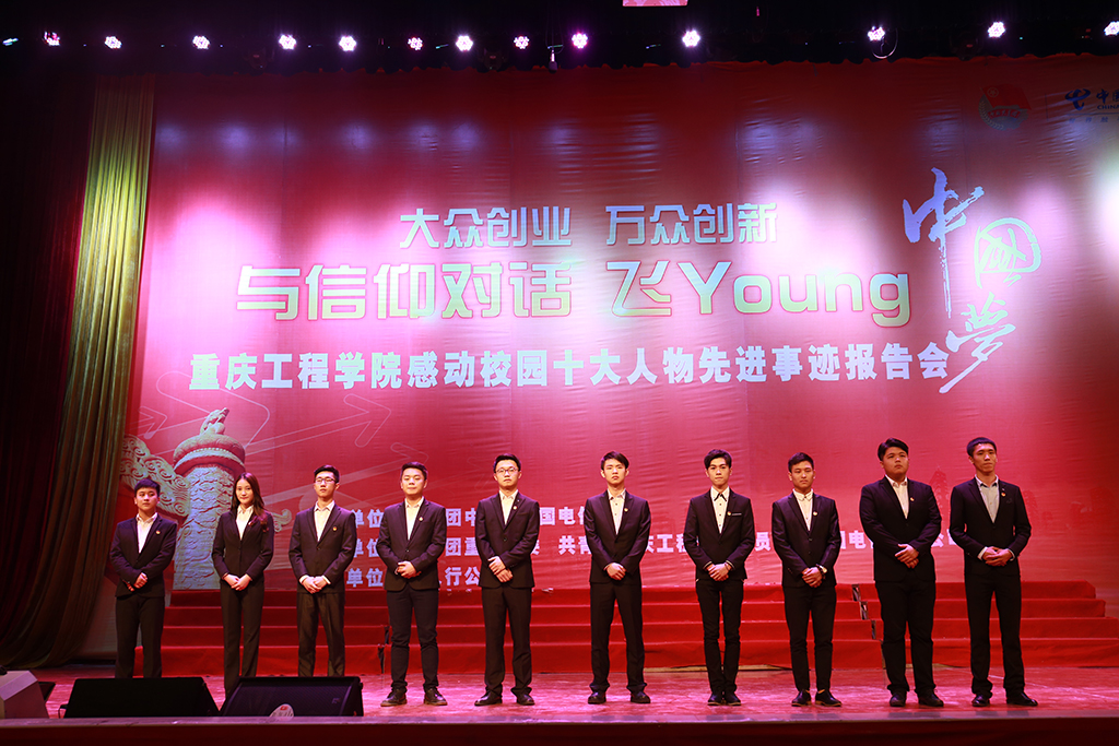 本网讯(校团委 黄涛)为弘扬社会主义核心价值观,展现重工学子自强不息、奋发向上的精神风貌,5月19日晚,由学校党委宣传部、党委学生工作部、大学生素质教育中心、校团委联合举办的“与信仰对话”感动校园十大人物先进事迹报告会在学术报告厅隆重举行。重庆市学联驻会执行主席齐继东、学校副校长王琼花出席。