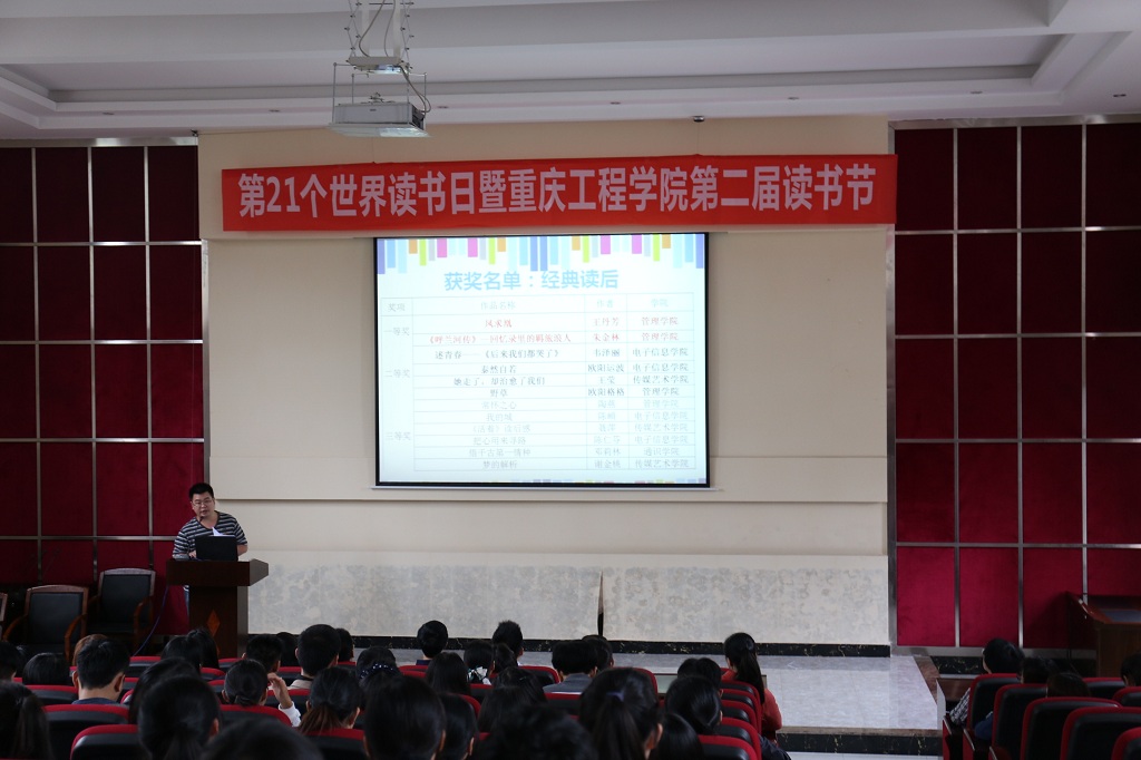 本网讯(图书馆 王玉荣)“阅读人生,品味经典”——重庆工程学院第二届读书节,于5月26日在行政楼阶梯教室举行闭幕式,校党委副书记盛友兴教授出席。