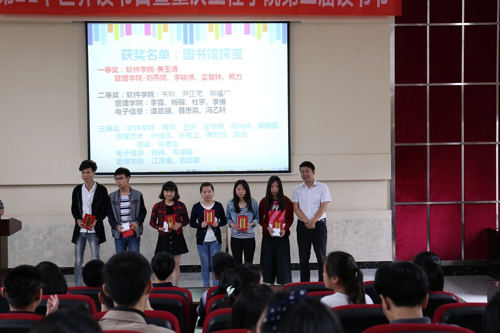 闭幕式,校图书馆副馆长潘晓旭总结了读书节系列活动的开展情况,并宣读了各项活动的获奖者名单。本次读书节于4月20日开幕,5月26日闭幕,历时一个多月,在此期间一共开展了六项活动,参与人数达千人次,获奖人数达113人,奖品包括运动手环、移动电源等。
