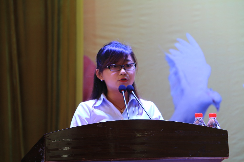 管理学院赵雪米同学代表毕业生发言,她深情回顾了三年以来一起上课学习,一起参与社团活动,一起志愿服务,一起社会实践,一起逐梦前行……的“光辉岁月”,向可亲可敬的母校,向辛勤耕耘地老师们,表示最衷心的感谢,并致以最崇高的敬意!他表示将时刻牢记母校“尽责、守信、求精、创新”的八字校训,在今后的工作和生活中“勤学,善思,笃行”,争做一个“自信、自立、自强”的人!将努力用成功来回报母校,祝愿母校明天更美好!