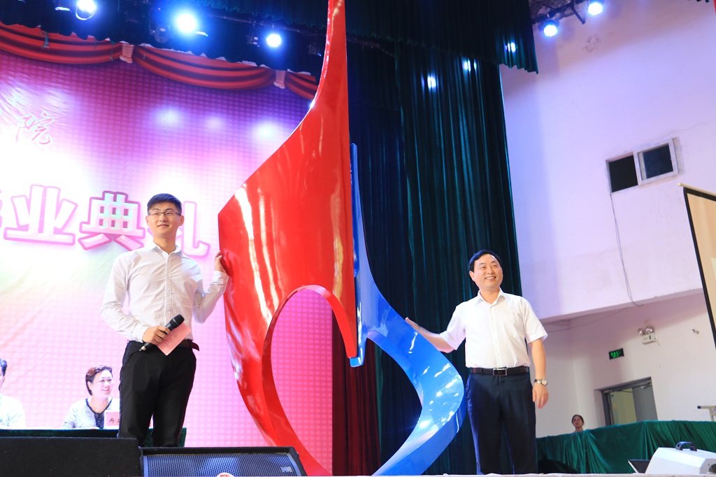 软件学院汪洋同学代表毕业生向学校捐赠了“奋进”雕塑,表示全体毕业学子将与母校共奋进基,祝福母校未来更辉煌、更壮大。此刻的会场响起了“我们在南温泉边相聚,用青春点击五彩梦想;我们从花溪河畔启航,用指尖谱写时代华章……”掌声雷动,经久不息,毕业典礼在不舍中悄然落下帷幕。