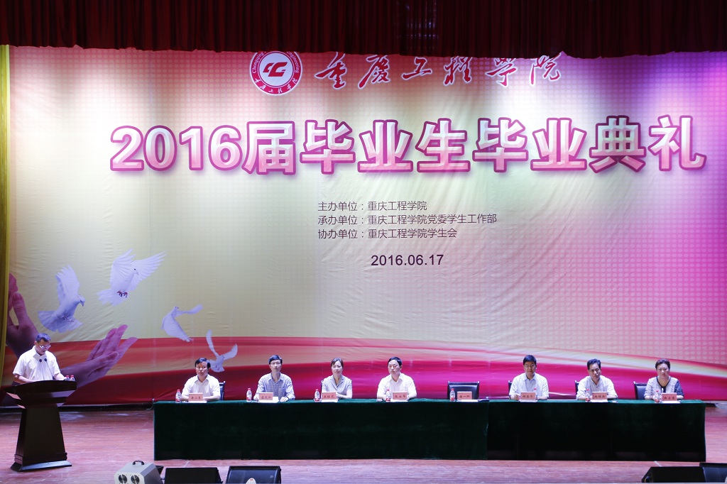 本网讯(学工部\党委宣传部)“一朝师生情,终生缅于怀;学子闯天下,母校候佳音”,又到一年毕业时,难说分离诉再见,6月17日上午9:00,学校在学术报告厅隆重举行2016届毕业生毕业典礼。校领导唐一科、张业平、程昌华、王琼花、冉维新、冉启蓉、唐小勇出席典礼,典礼由校党委副书记盛友兴主持。各职能部门、二级学院负责人,教师代表、毕业班辅导员及全体毕业生参加典礼。