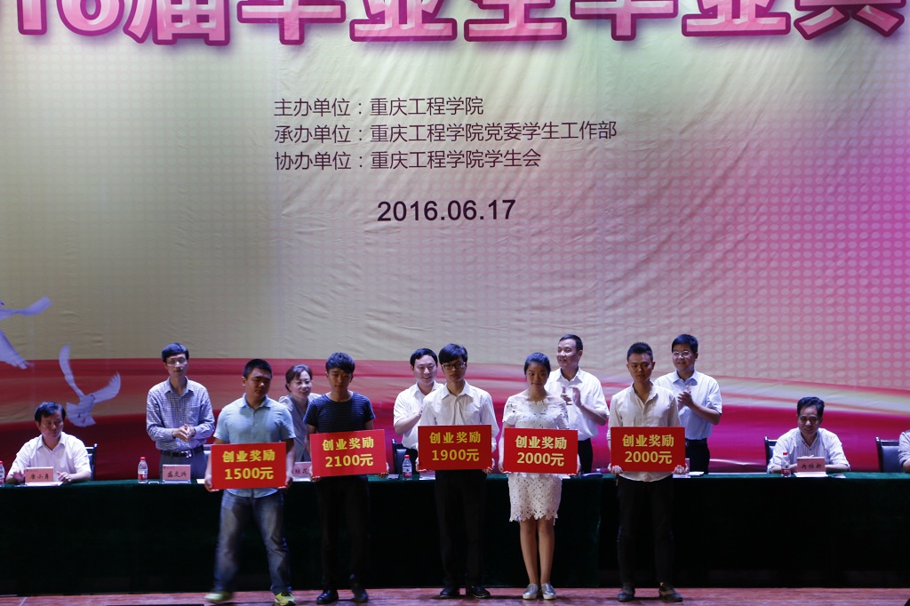 典礼上,党委书记张业平宣读了2016届优秀毕业生表彰决定,与会领导为市级优秀毕业生、自主创业毕业生代表颁奖。校长唐一科为毕业生代表颁发毕业证书。