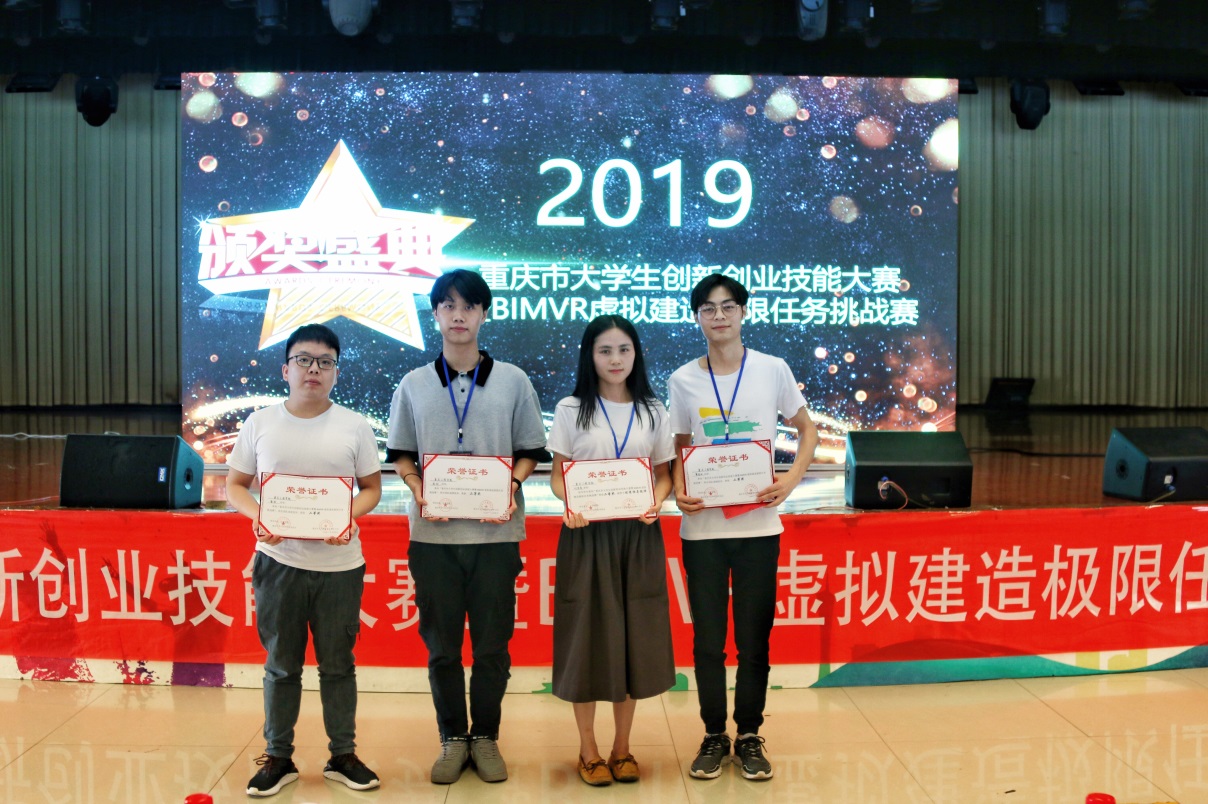 本网讯(文/土木学院 毛云莹 图/土木学院 刘香香)4月24日, 2019年重庆市大学生创新创业技能大赛暨第二届BIMVR虚拟建造极限任务挑战赛顺利闭幕,我校土木工程学院2016和2017级工程造价专业学生雷林、唐钊、曾惟恬,从130余名选手中脱颖而出,斩获二等奖。