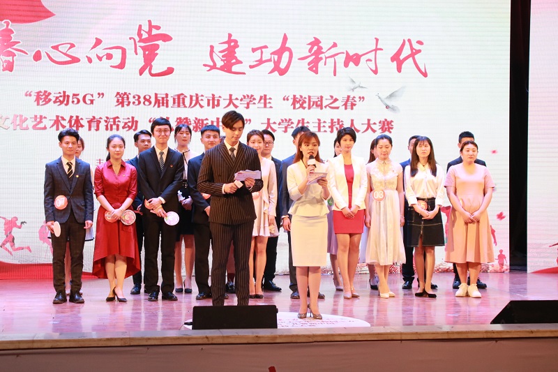 本网讯(文/校团委 尚伟 图/校学生会)为纪念五四运动100周年,发扬五四精神,4月29日下午,“青春心向党·建功新时代”—“移动5G”重庆市第38届大学生“校园之春”文化艺术体育活动之“礼赞新中国”大学生主持人大赛决赛在我校学术报告厅隆重举行。本次大赛由市委宣传部、市委教育工委、市教委、团市委、市学联联合举办,重庆工程学院承办,团市委党组成员、副书记江光伟,巴南区委副书记何永革,重庆工程学院党委书记、常务副校长张业平,党委副书记盛友兴,纪委书记、工会主席唐小勇出席活动,市委宣传部、团市委有关处室负责人、巴南团区委及相关高校团委负责人,青年大学生代表共计1200余人参加活动。在上届比赛中荣获一等奖的我校学生周芳宇与重庆电视台都市频道主持人黄迦迪共同担任主持。