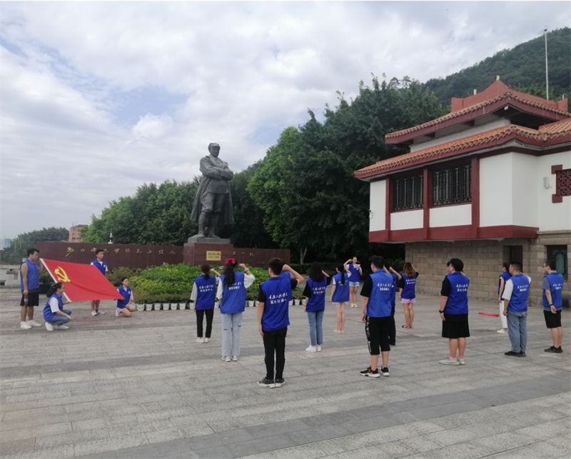 8月12日,社会实践团走进刘伯承同志纪念馆,在刘伯承同志铜像前,成员们面向党旗举起右手,重温入党誓词。在集体参观纪念馆时,现场同学们通过对刘伯承元帅“军神传奇、彝海结盟、虎狼突击的岁月、创办军神学院、帅门家风”等篇章的学习,深刻领会了 “军神”精神,牢记初心和使命。