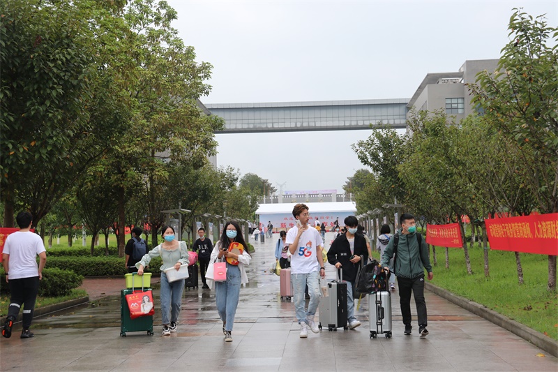 本网讯(文/大学生记者团 姚文珊 赵林亚 图/大学生记者团 谢家乐 王浩宇)秋雨微凉,丹桂飘香,9月的重工迎来了又一批新同学,9月15、16日,双桥校区新生入学报到工作正式启动,4000余名2020级学生陆续进校,正式成为重庆工程学院的一名大学生。