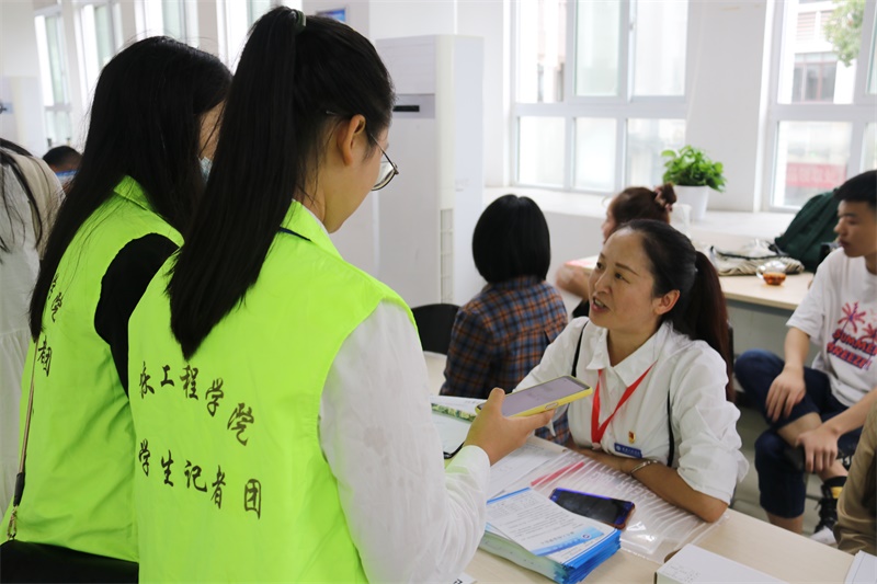 迎新志愿者们提前在校区内做好布置工作,包括贴好醒目的地标和励志标语,为进校同学做好志愿服务,将“暖心”二字贯彻到底。土木工程学院2019级土木工程4班的志愿者徐少聪讲述了自己的迎新工作准备:志愿者团队在经过线上反复商讨后确定了工作方案,提前赶到双桥校区后还组织了新老生志愿者工作会、各个迎新站点任务布置会、迎新工作实地演练等。电子信息学院2019级电子信息工程2班的志愿者唐朋详细介绍了新生报到期间的志愿者工作流程:在新生进校时做好行李消毒、体温检测、登记信息工作,为进校后的新生做好指引工作,包括带领他们完成缴费,帮助完成网上缴费的学生找到对应专业和辅导员完成报到。