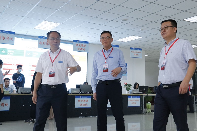 14号上午,党委书记兼督导专员谭明术率先赶到双桥校区,全面视察了此次迎新工作的准备情况。15号上午,学校校长桂国庆、党委副书记兼常务副校长张业平、副校长蒋国华、校长助理王建东等校领导带领各二级学院院长、相关职能部门负责人来到双桥校区看望了迎新工作团队,详细了解新生报到的工作安排,张书记还专程赶到学校的迎新站点,看望了坚守在迎新一线的工作人员。