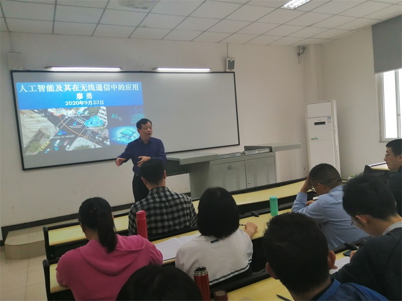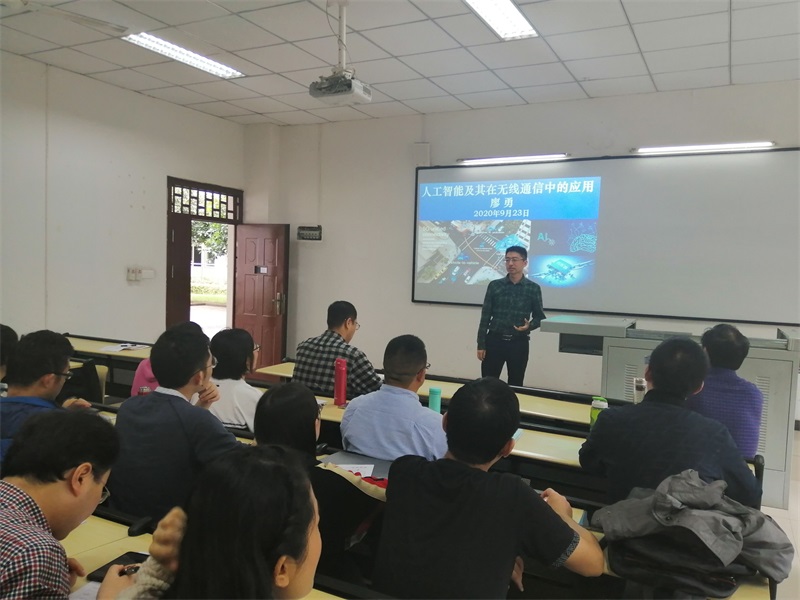 本网讯(文/图 电子信息学院 涂敦兰)为推进学科专业一体化建设,营造学术科研氛围,提升教师的学术水平和科研能力,9月24日下午,电子信息学院组织开展了“人工智能及其在无线通讯中的应用”学术讲座。重庆大学重庆大学通信与测控中心教授、硕士生导师廖勇博士应邀担任主讲,讲座由何世彪院长主持,电子信息学院全体教师参加。