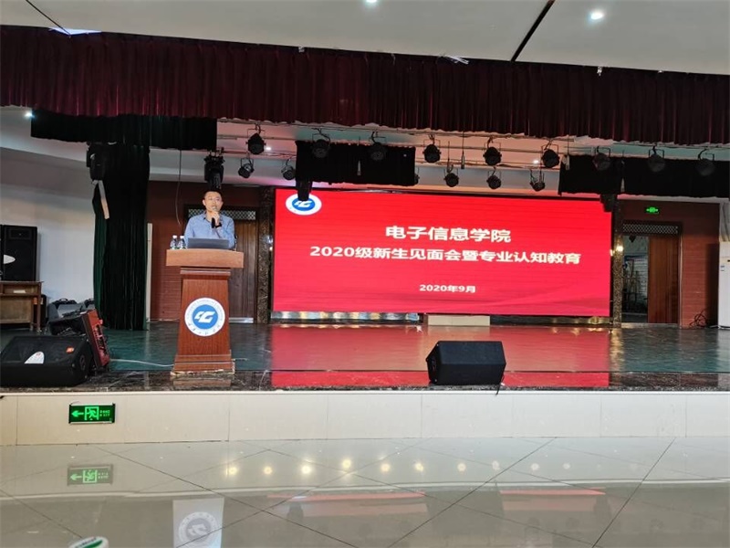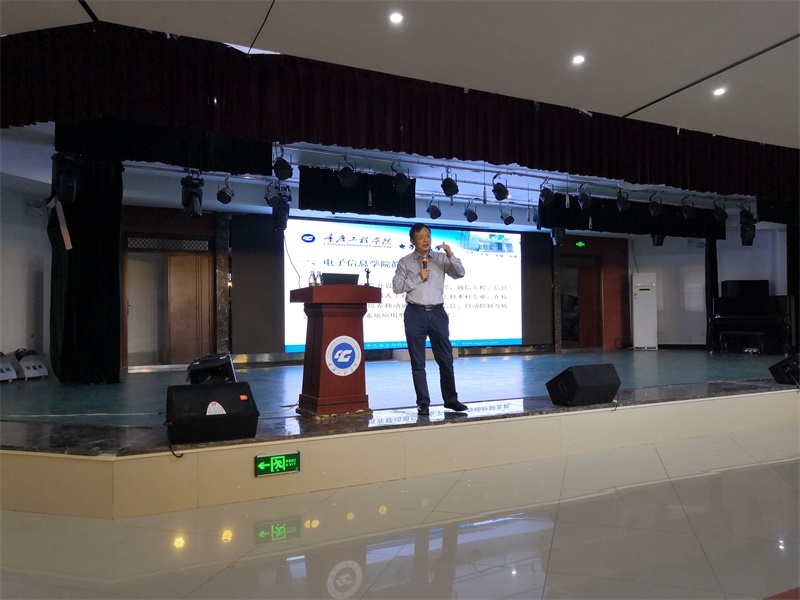学院院长何世彪向同学们介绍了电子信息学院的基本情况,特色亮点和人才培养规划,重点对电子信息学院现有5个专业内涵,专业之间的关联和相互支撑进行了解读,就学院近年来校企合作、创新创业、就业等工作进行了说明。何院长对在场的同学们寄予了新的期望,嘱咐他们要拓宽眼界、提升格局,增强修养、健全人格,努力学习、不断实践,融洽关系、严格自律,进一步坚定了同学们学好专业知识的信心。