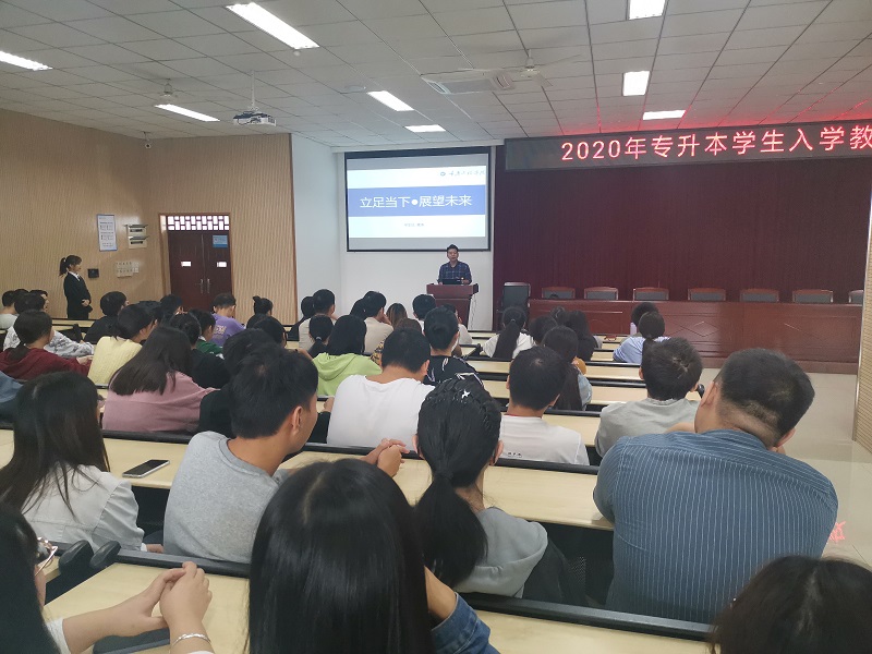 本网讯(文/大学生助理事务委员罗文 图/大学生助理事务委员张云飞)为了能让我校专升本学生尽快融入校园,保持积极向上的学习态度和健康的心理,9月27日,我校召开2020年专升本学生入学教育专题培训会,学生处副处长、团委书记黄涛主持会议,全校2020年全体专升本学生参与了本次培训。