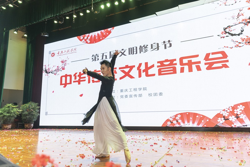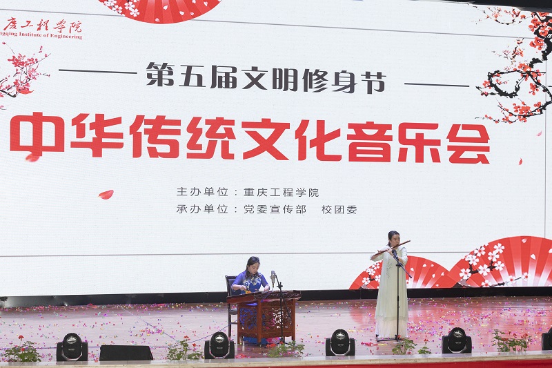 本网讯(文/图 党委宣传部 赵鹏涛)为贯彻落实习近平总书记系列重要讲话精神,围绕立德树人的根本任务,培育和践行社会主义核心价值观,引领学生坚定“四个自信”,弘扬传统文化,10月21日晚,重庆工程学院南泉校区学术报告厅举行了第五届文明修身节开幕式暨中华传统文化音乐会。党委书记兼督导专员谭明术、党委副书记兼常务副校长张业平、校长助理王建东、各二级学院党总支书记以及部分职能部门负责人出席现场观看演出活动。