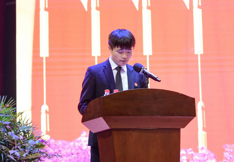 校学生会代表、土木工程学院2018级学生朱健龙上台解读了《重庆工程学院第二次学生代表大会工作报告》,回顾和总结了我校学生会近两年取得的工作成绩,同时也明确了学生会接下来的工作任务。他表示,在校党委的正确领导和校团委的认真指导下,学生会组织将实施全方位深化改革,全体学生成员要高举习近平新时代中国特色社会主义思想伟大旗帜,在实现中华民族伟大复兴中国梦的新长征路上奋勇搏击,重工学子们要用自己的青春在为祖国、为人民的奉献中焕发出绚丽光彩。