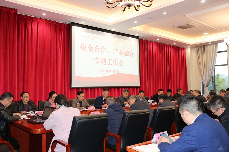本网讯(文/校企合作办黄梅 图/大学生记者团袁艺谋 李昭汶)为了进一步推动学校“校企合作、产教融合”办学模式的深入实施,学校于10月28日在南泉校区召开2020年“校企合作、产教融合”专题会议,会议由校长桂国庆教授主持,董事会领导、校领导、二级学院和职能部门负责人参加。