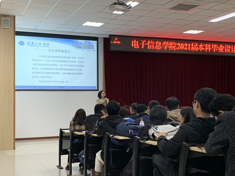 学院电子工程系专业教师张仁永向在场同学们讲解了毕业论文(设计)格式,对撰写毕业论文的过程中格式规范、布局合理、注意事项等进行了明确要求。张老师希望同学们在完成毕业设计过程中要多查阅规范、多注重细节、多交流沟通。
